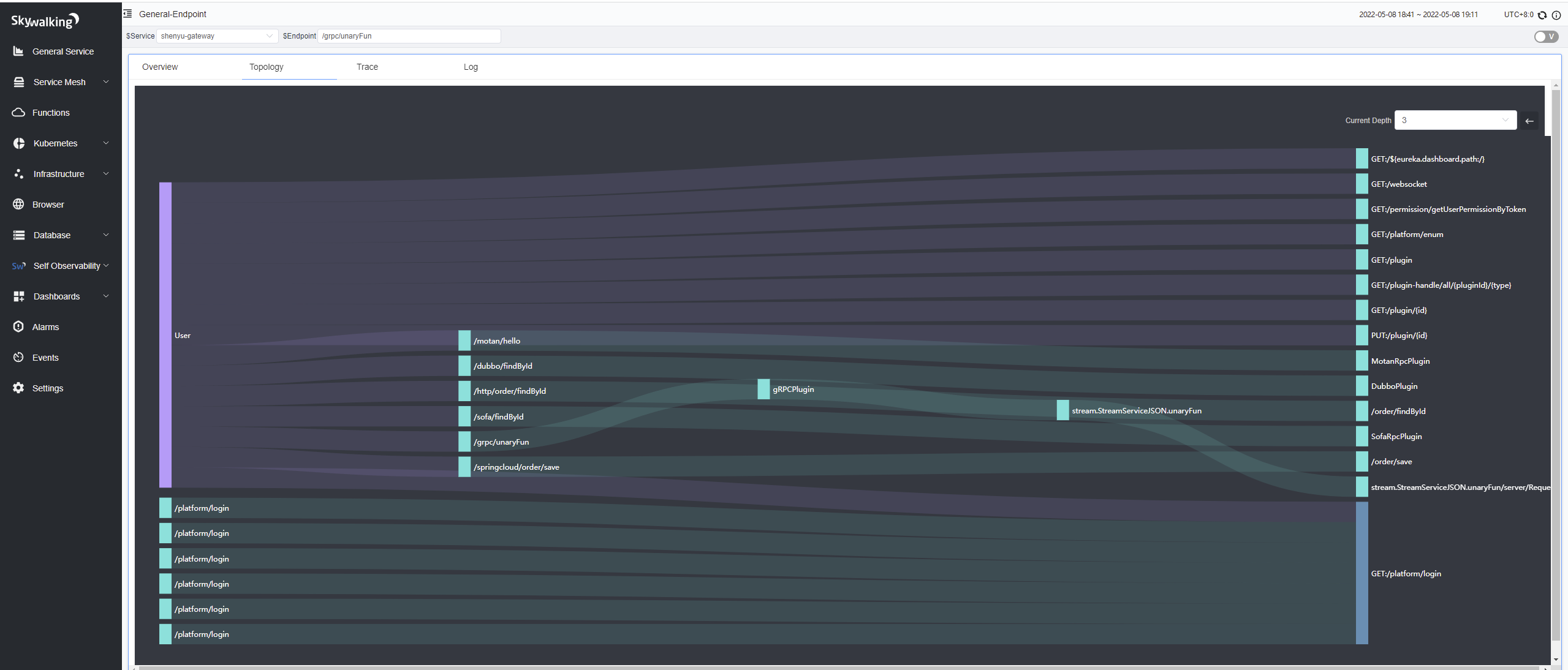 The above explains the principle of SkyWalking ShenYu plug-in implementation, the following deployment application to see the effect. SkyWalking powerful, in addition to the link tracking requires the development of plug-ins, other powerful features out of the box.