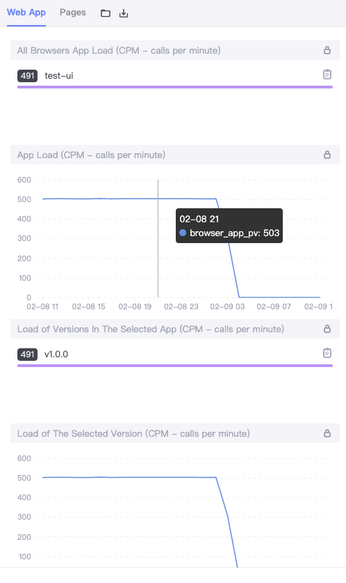 - App JS Error Rate, the proportion of PV with JS errors in a selected time period to total PV.