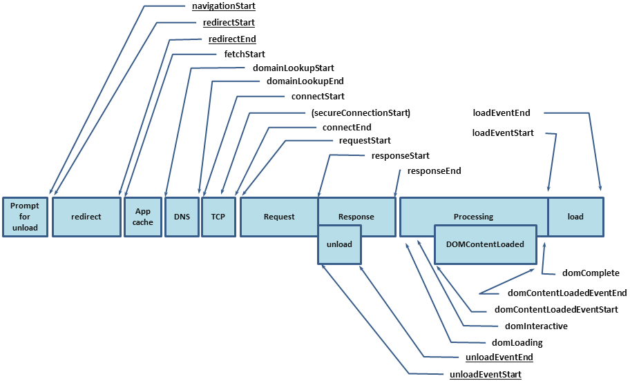 The skywalking-client-js uses [window.performance] (https://developer.mozilla.org/en-US/docs/Web/API/Window/performance) for performance data collection. From the MDN doc, the performance interface provides access to performance-related information for the current page. It’s part of the High Resolution Time API, but is enhanced by the Performance Timeline API, the Navigation Timing API, the User Timing API, and the Resource Timing API. In skywalking-client-js, all performance metrics are calculated according to the Navigation Timing API defined in the W3C specification. We can get a PerformanceTiming object describing our page using the window.performance.timing property. The PerformanceTiming interface contains properties that offer performance timing information for various events that occur during the loading and use of the current page.
